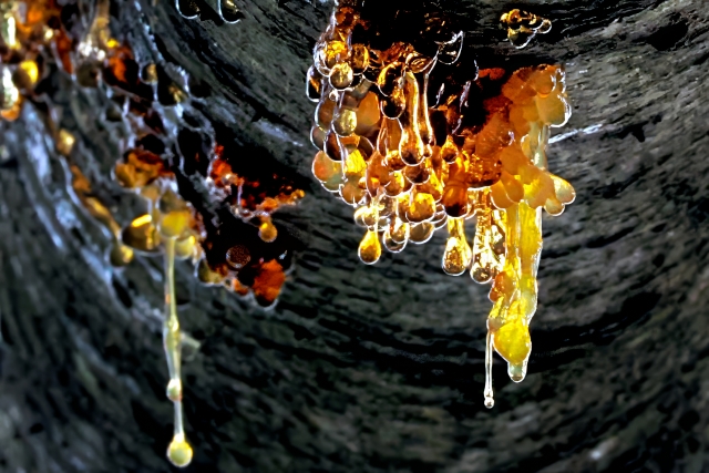 マツやヒノキなど松柏科の針葉樹は、樹木が傷つくと樹脂を出して傷を塞ぎます。