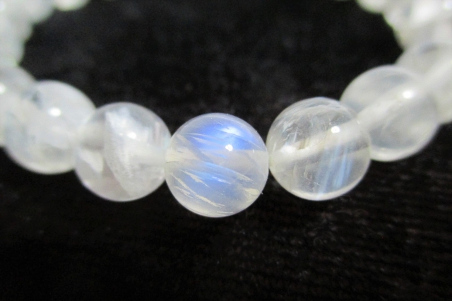 「ムーンストーン」は、“月”を思わせる青白い光が半透明の石の曲面に浮き上がって見える「シラー効果」がこの石の特徴です。